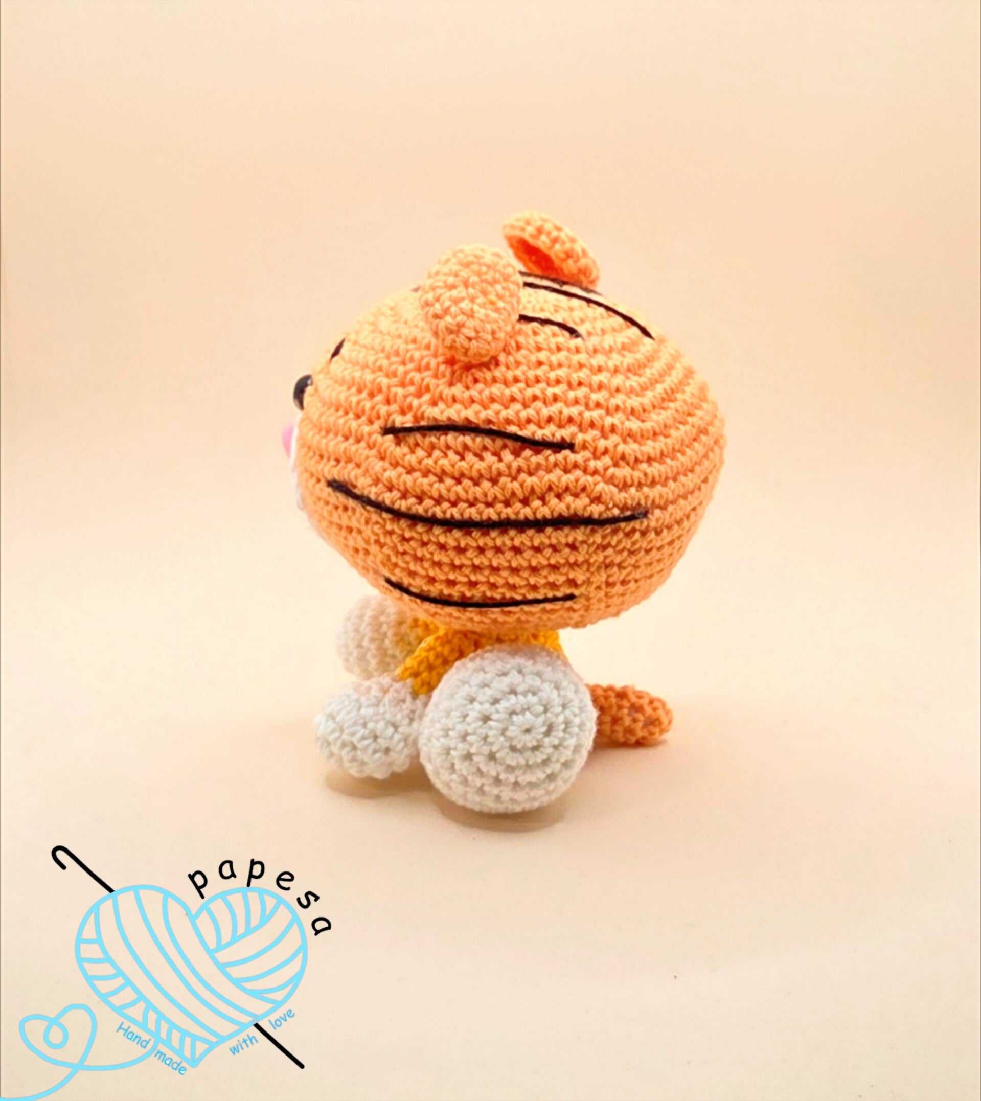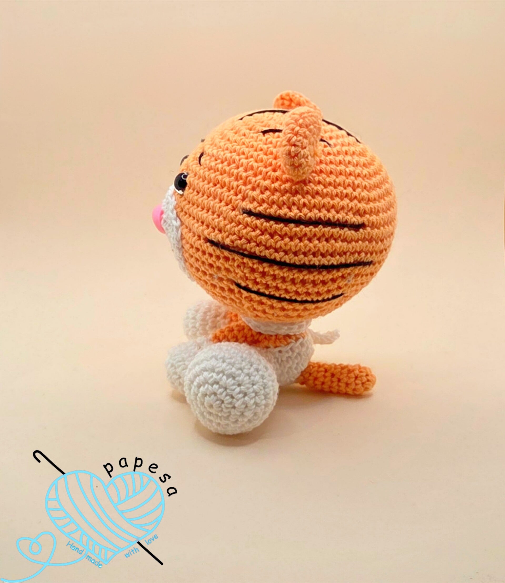 Tassilo der Tiger ist ein liebevoll gehäkeltes Amigurumi und misst ca. 12 cm. 📏🧡 Er wird aus hochwertiger GOTS-zertifizierte Baumwolle gefertigt und eignet sich perfekt als Geschenk, Dekoration oder kleines Sammlerstück für Amigurumi-Fans. 🎁✨