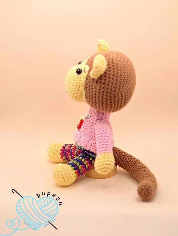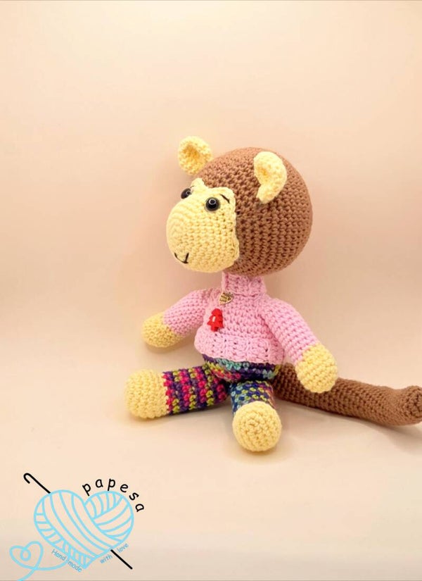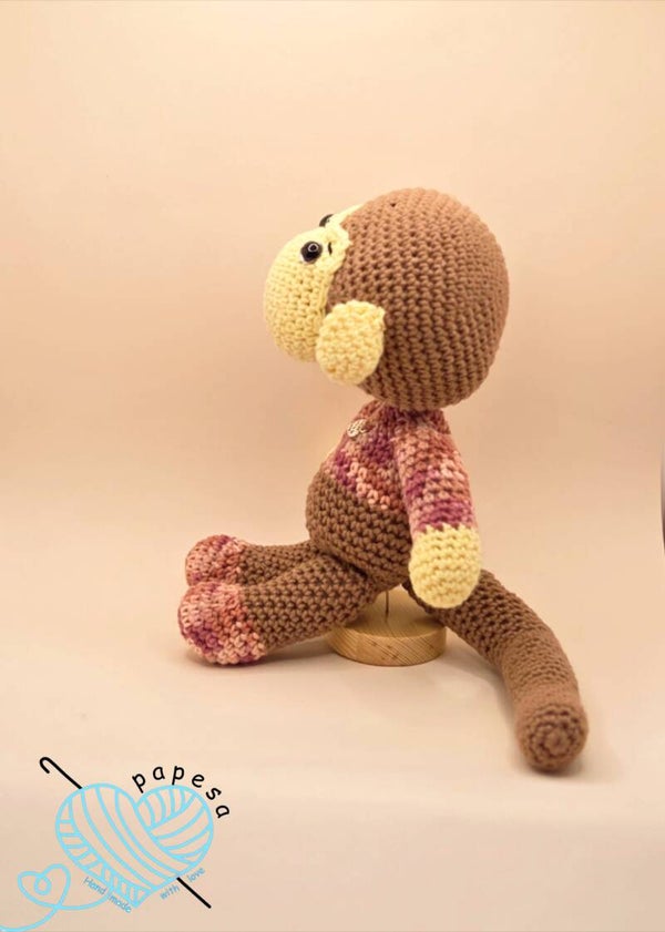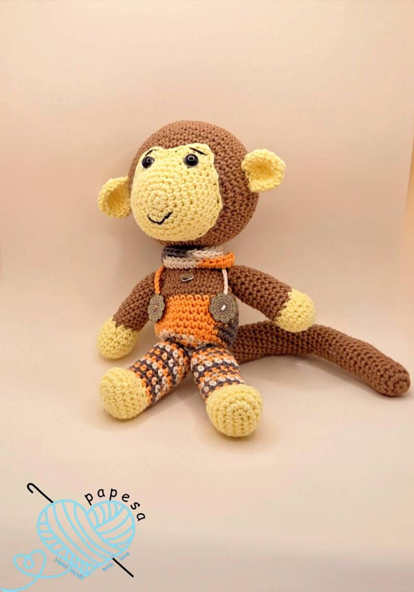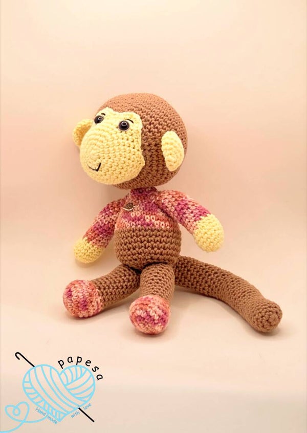 Aaron der Affe ist ein liebevoll handgehäkeltes Amigurumi und ein treuer Begleiter für Groß und Klein. Mit seinem niedlichen Gesicht, den weichen Materialien und seinem fröhlichen Charakter ist er ein ganz besonderes Geschenk – perfekt zum Kuscheln, Spielen oder Dekorieren. 🌿🧸