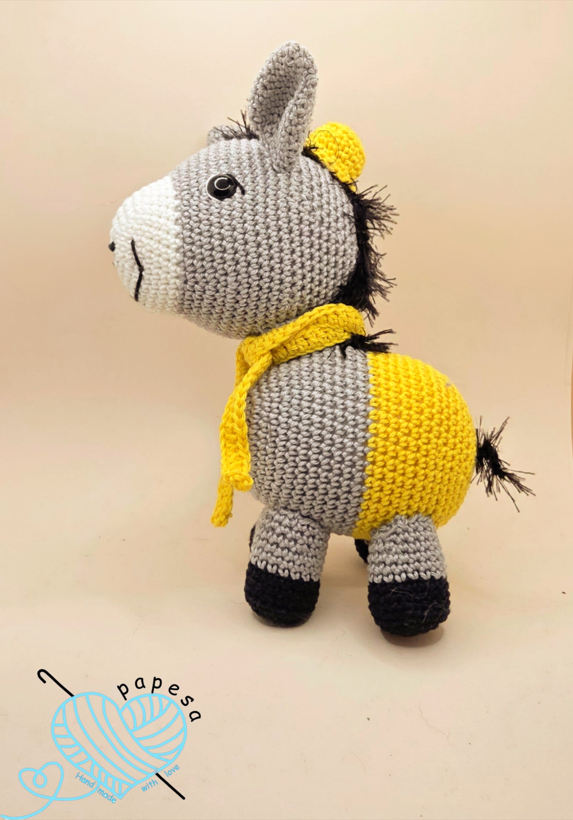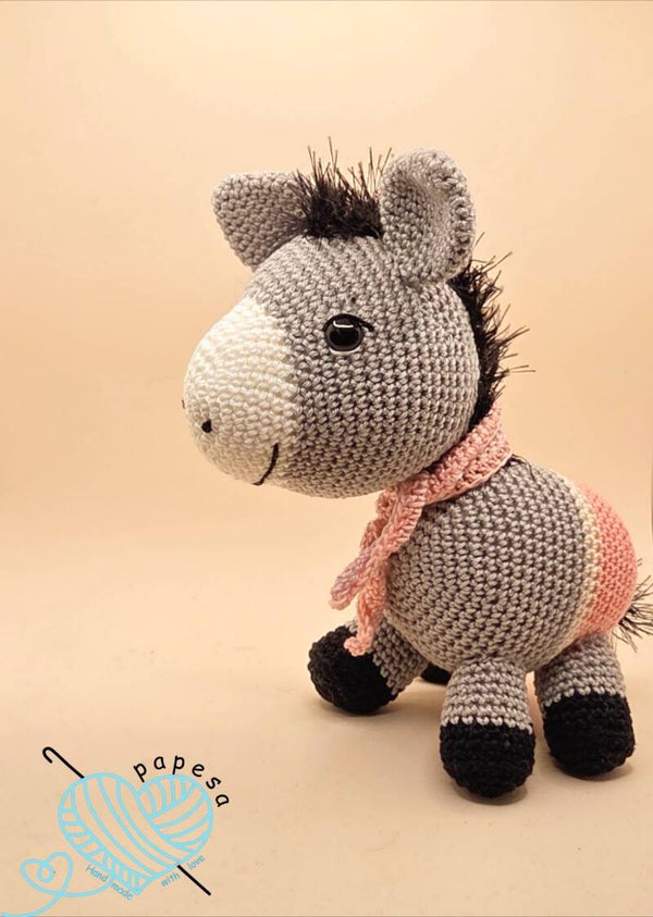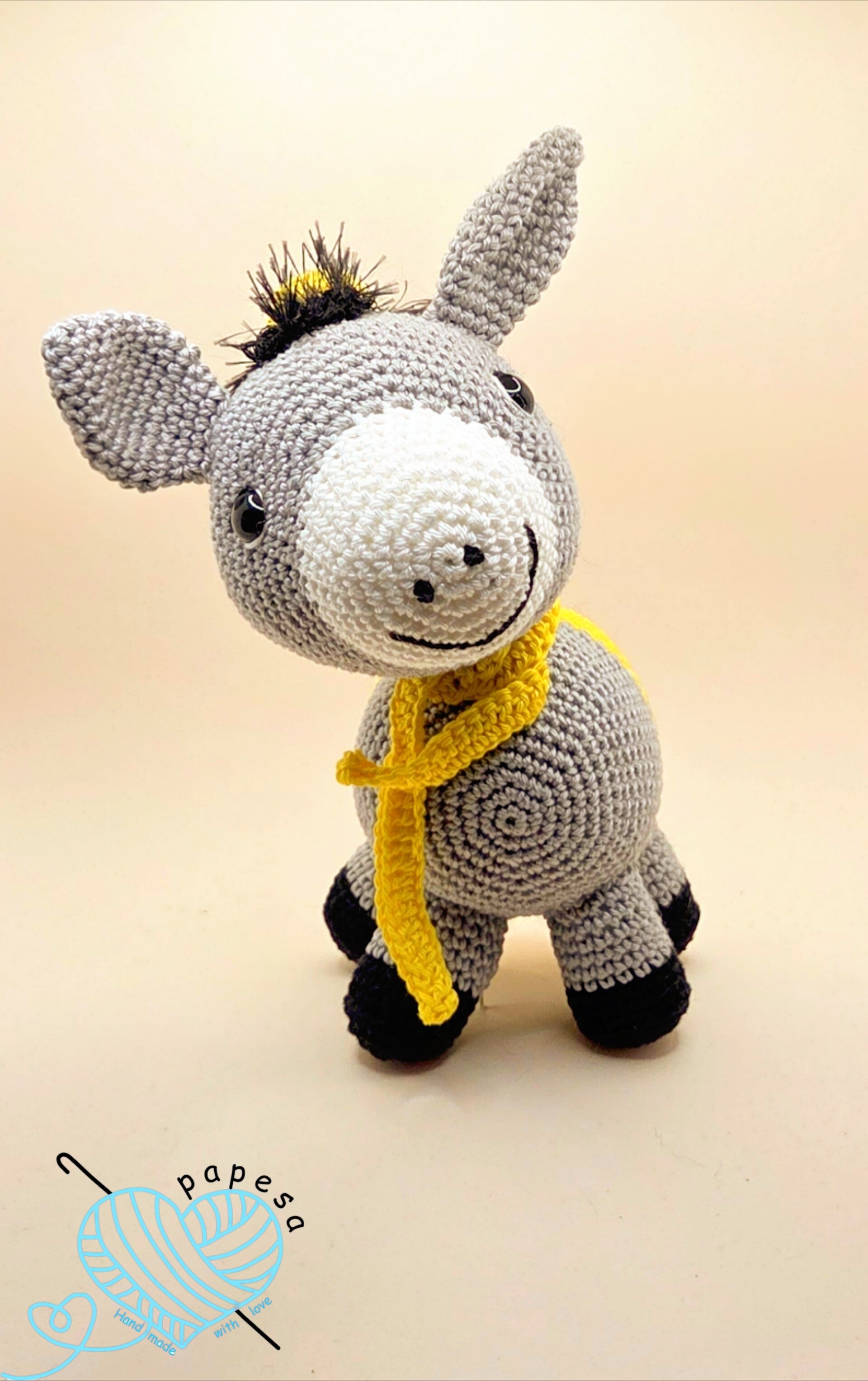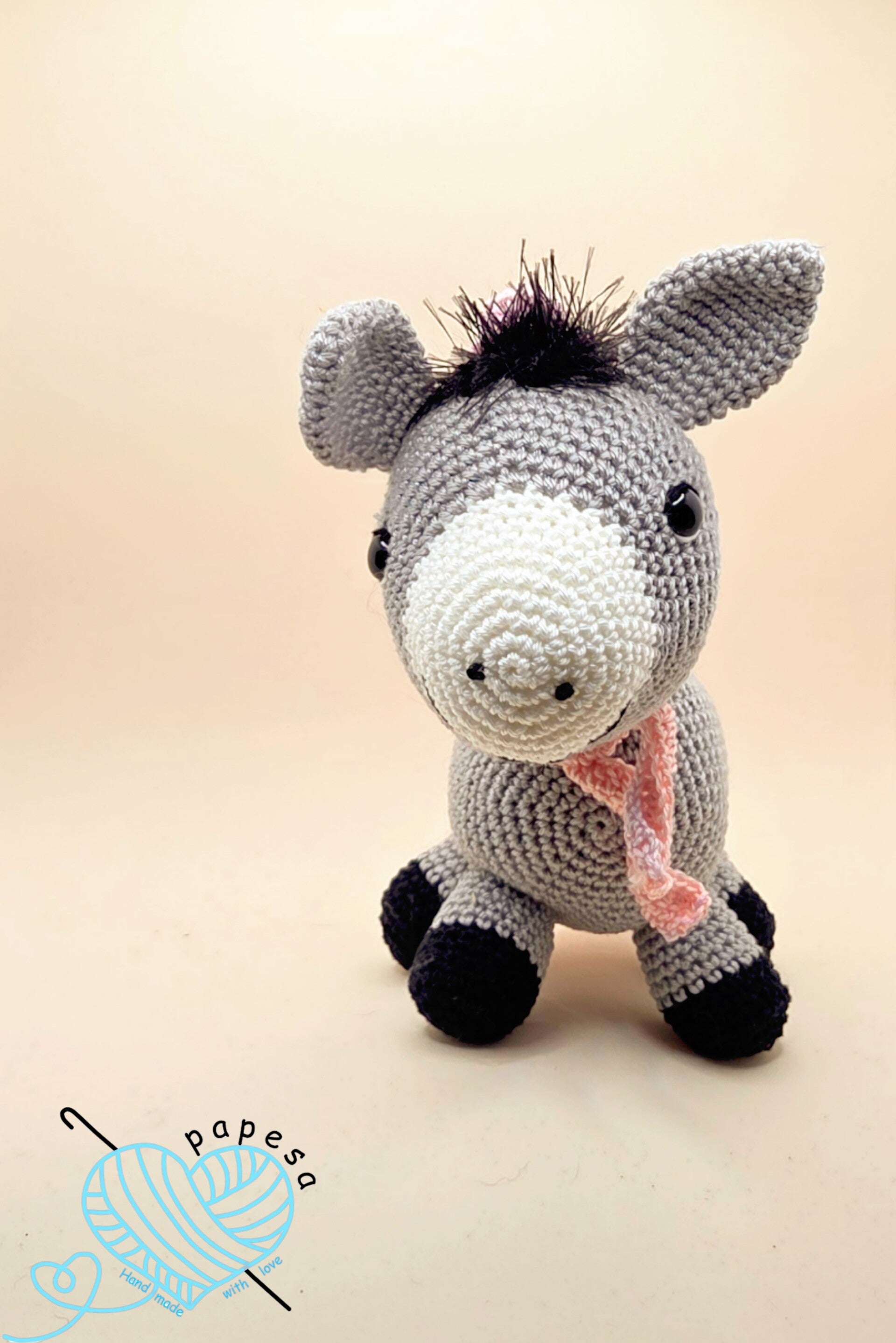 Eberhard der Esel Amigurumi 20 cm – gehäkelter Esel aus Baumwolle – handgemachtes Kuscheltier – Bauernhof Tier – Geschenk für Kinder & Baby